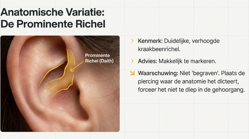 Bij een Daith draait alles om stabiliteit en weefselondersteuning.