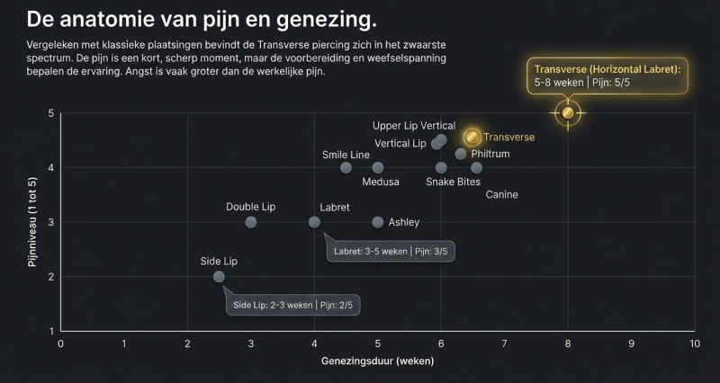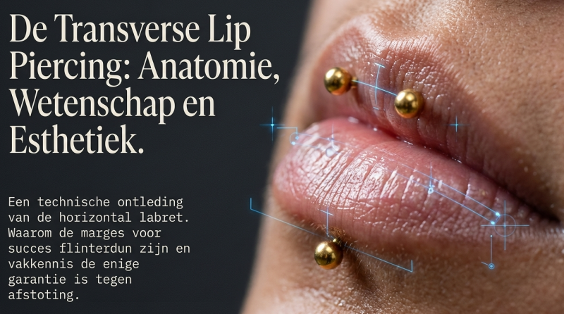 Laten we eerlijk zijn: de Transverse Lip Piercing (Horizontal Labret) ziet er vlijmscherp uit. Het is de ultieme vorm van zelfexpressie voor wie verder kijkt dan de standaard ringetjes en knopjes. Maar als expert en medisch communicator moet ik je uit de droom helpen: achter die 'glitter' schuilt een anatomisch mijnenveld. Veel mensen willen de look, maar begrijpen de wetenschap erachter niet. Bij Piercings Works zien we het dagelijks: de wens voor een unieke stijl botst vaak frontaal met de harde biologische realiteit. Niet alle piercings zijn gelijk, en deze specifieke variant vereist meer dan alleen een vaste hand; het vereist klinisch inzicht.